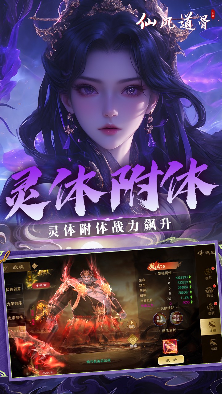 《仙风道骨》是一款高品质3D仙侠MMOARPG手游。采用次世代引擎,呈现顶级的电影画质,让玩家置身于一个真实的仙侠世界。在这里,你可以自由探索独特的炼化系统,通过自由组合配方,打造出独一无二的神兵利器。游戏社交玩法丰富,让你在修仙之路不再孤单。更有海量时装和坐骑,让你打造个性化的角色。在线即送VIP15和海量仙玉,尽享尊贵特权。别错过《仙风道骨》,开启一段情感与战斗交织的仙侠之旅!