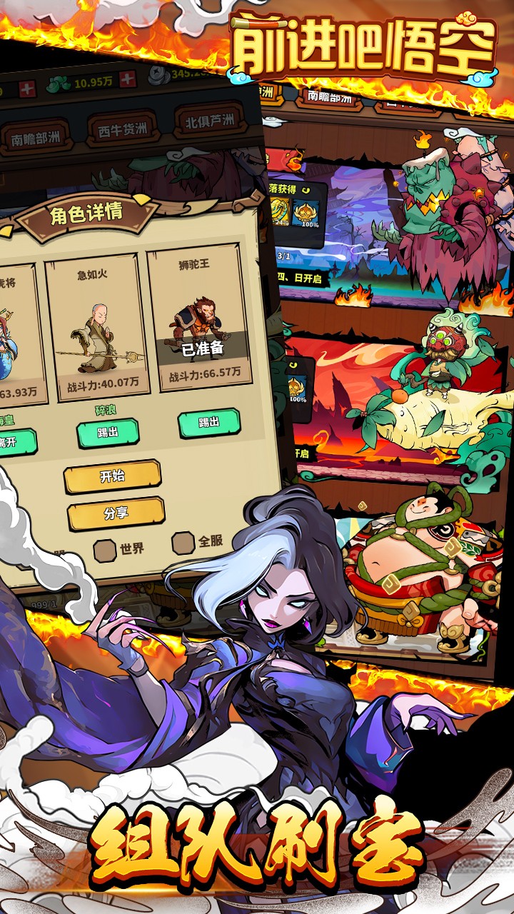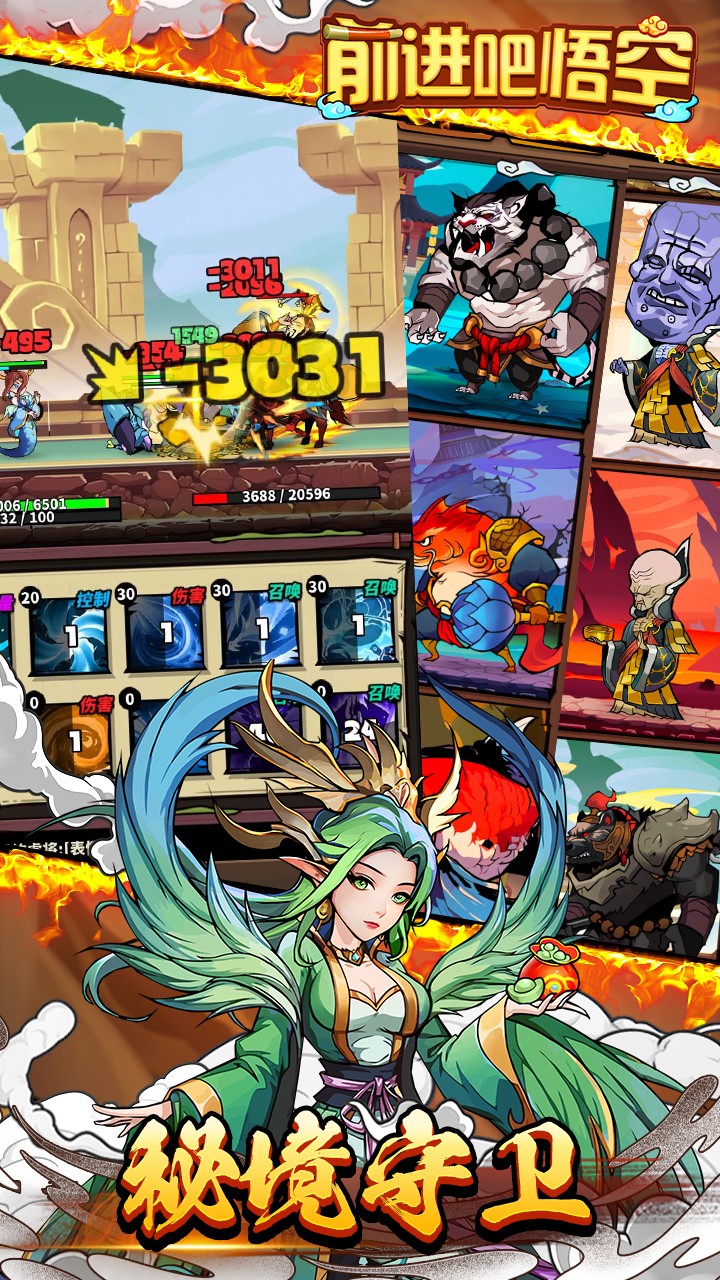 《前进吧悟空》是一款带技能操作的放置挂机卡牌游戏,可以策略手动操作,也能轻松自动推图。