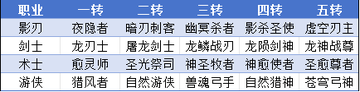 从初始职业到五转巅峰,每个阶段都有独特的职业称号与专属能力。无论是暗影中潜行的影刃,还是正面冲锋的剑士,亦或是掌控治愈之力的术士、精准狙击的游侠,都能在转职中找到属于自己的成长之道。具体转职路径如下表所示: