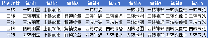 除了职业能力的蜕变,每次转职还会解锁丰厚的奖励,从外观装饰到实力提升道具,全方位助力冒险者成长。不同转职次数对应的解锁内容如下表,各位冒险者可提前规划自己的晋升目标: